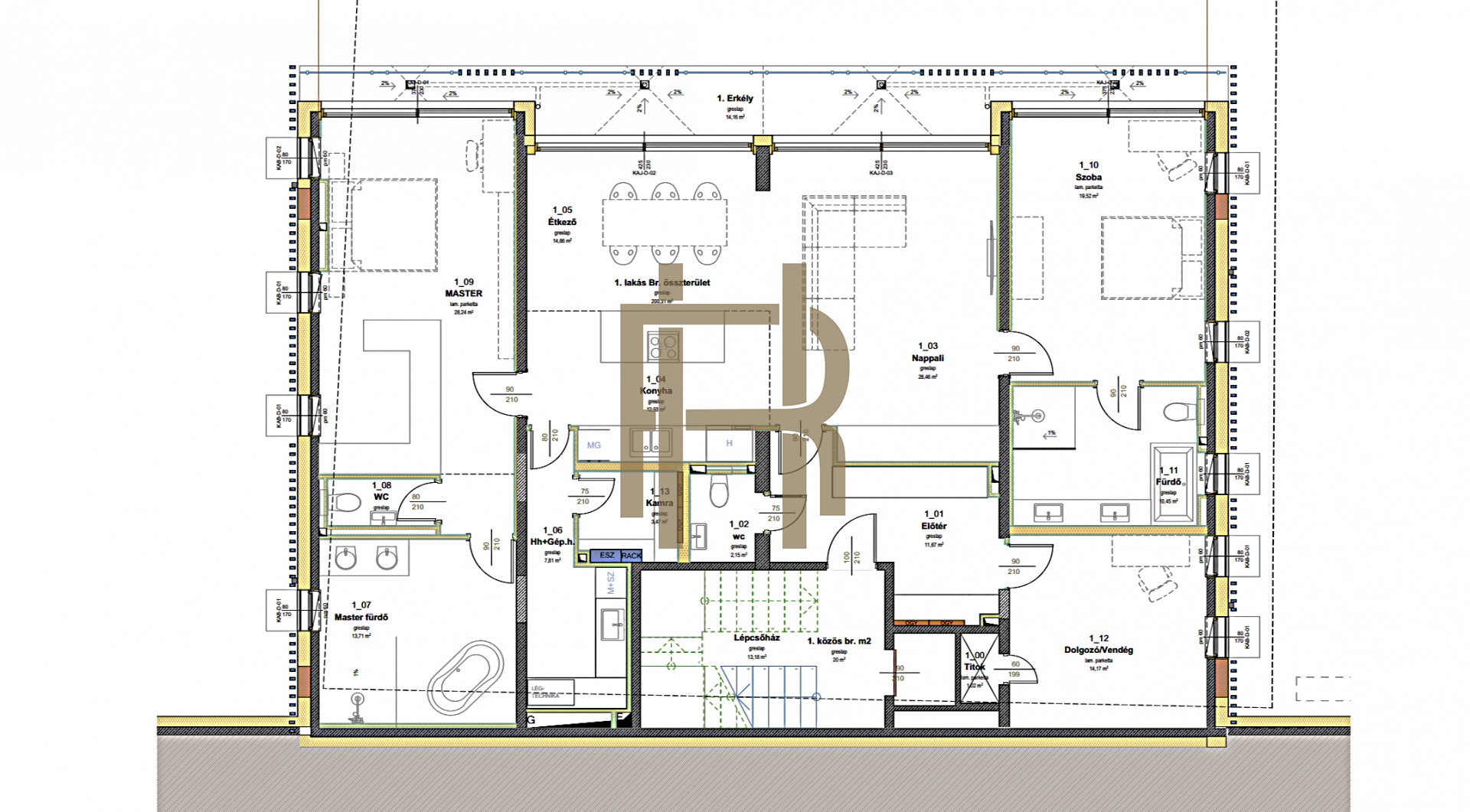 • Fürdőszobák: 2 teljes fürdő + vendég WC
