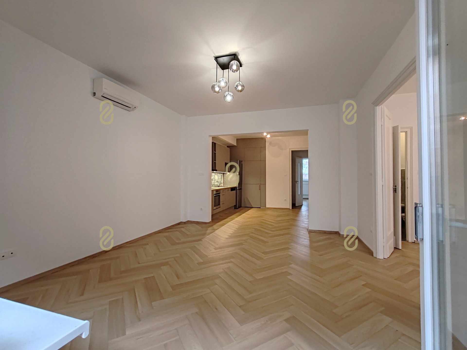 Étkező-konyha, erkélyes nappali (egy légtérben, mégis szeparált), hatalmas szoba, kádas fürdőszoba wc-vel, külön vendég wc, közlekedő, és még egy szoba. Minden helyiség ablakkal ellátott.