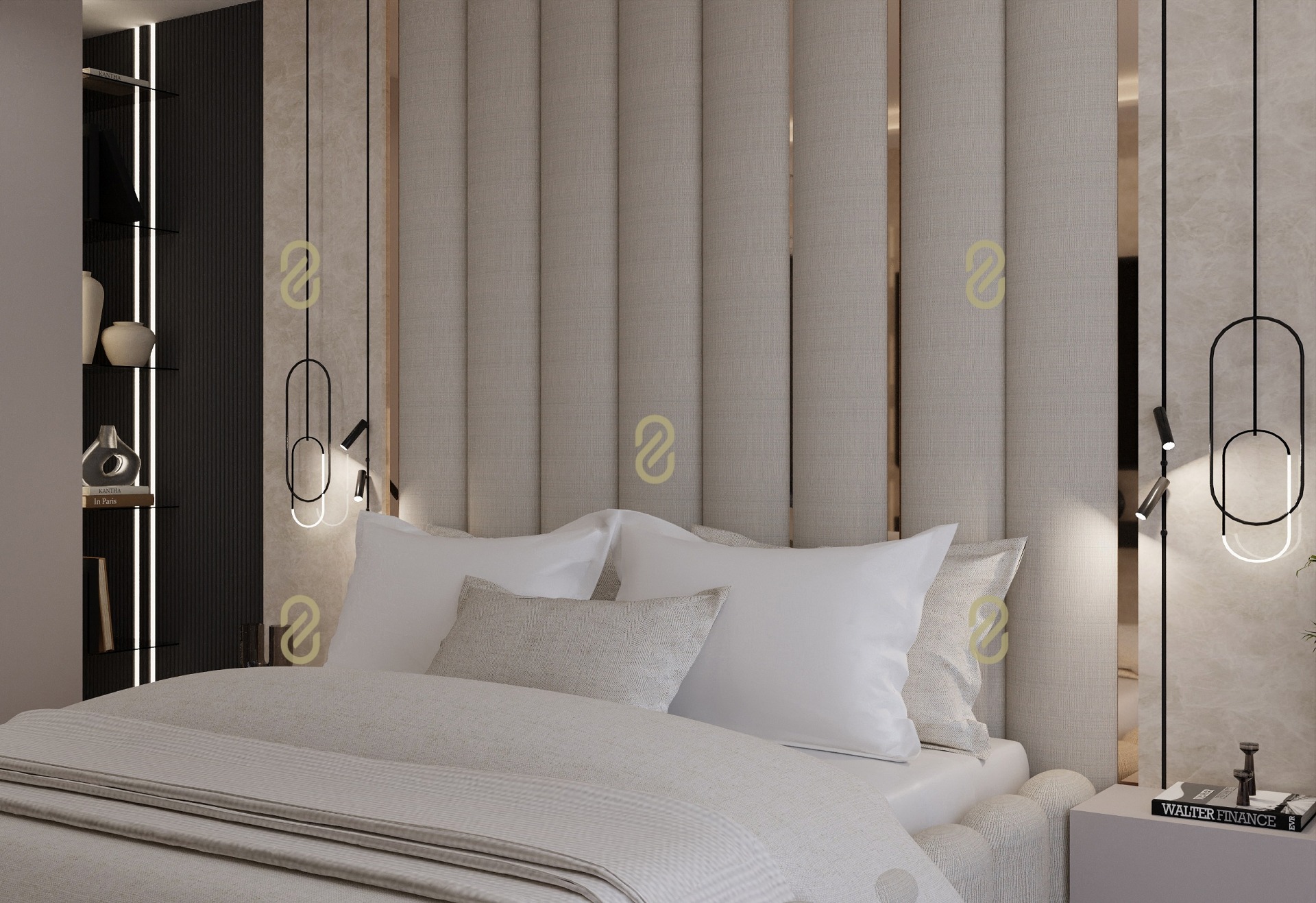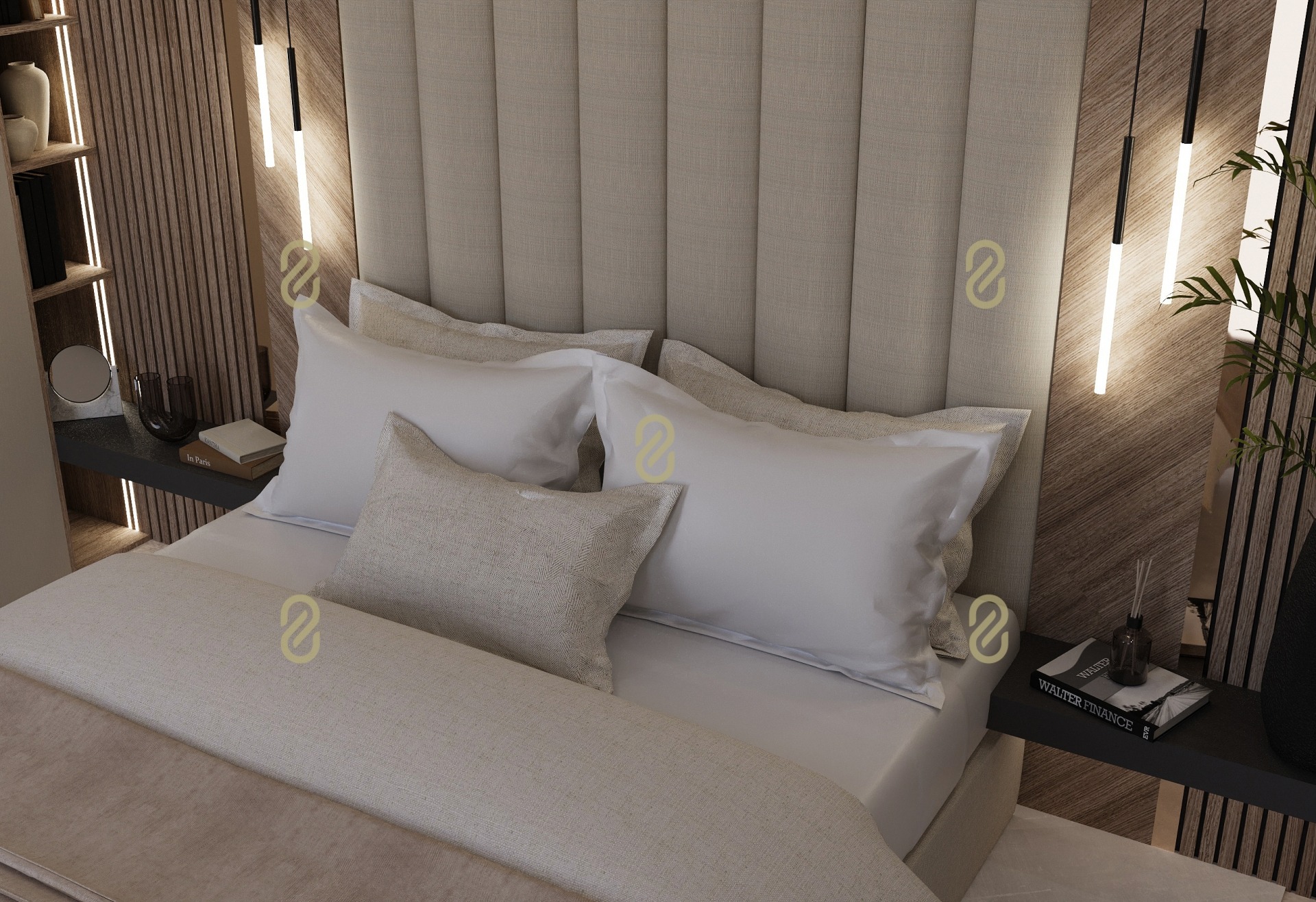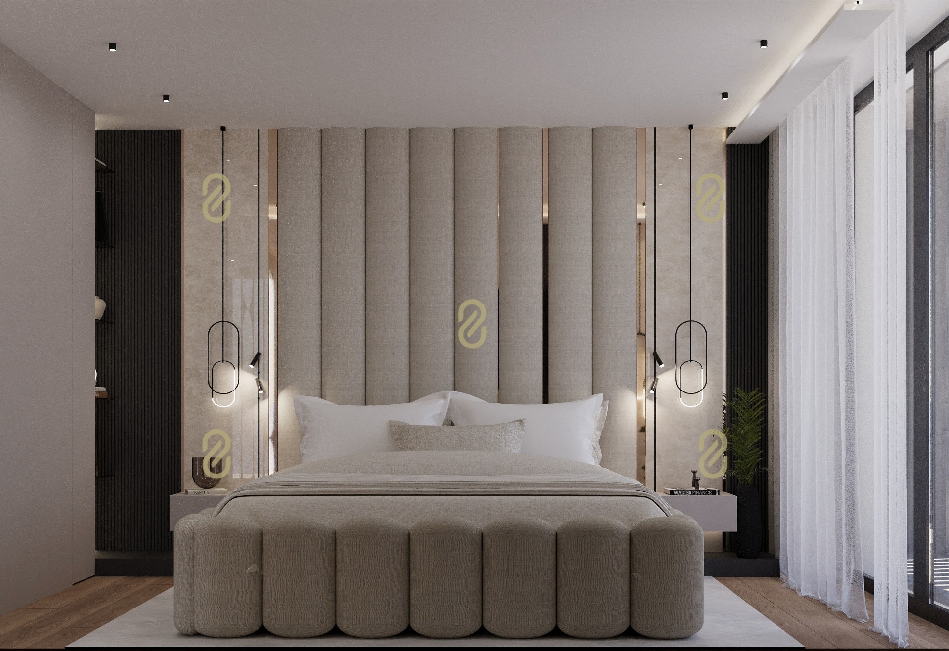 - Master hálószoba (12,5 m²) saját gardróbbal (9,5 m²) és fürdővel