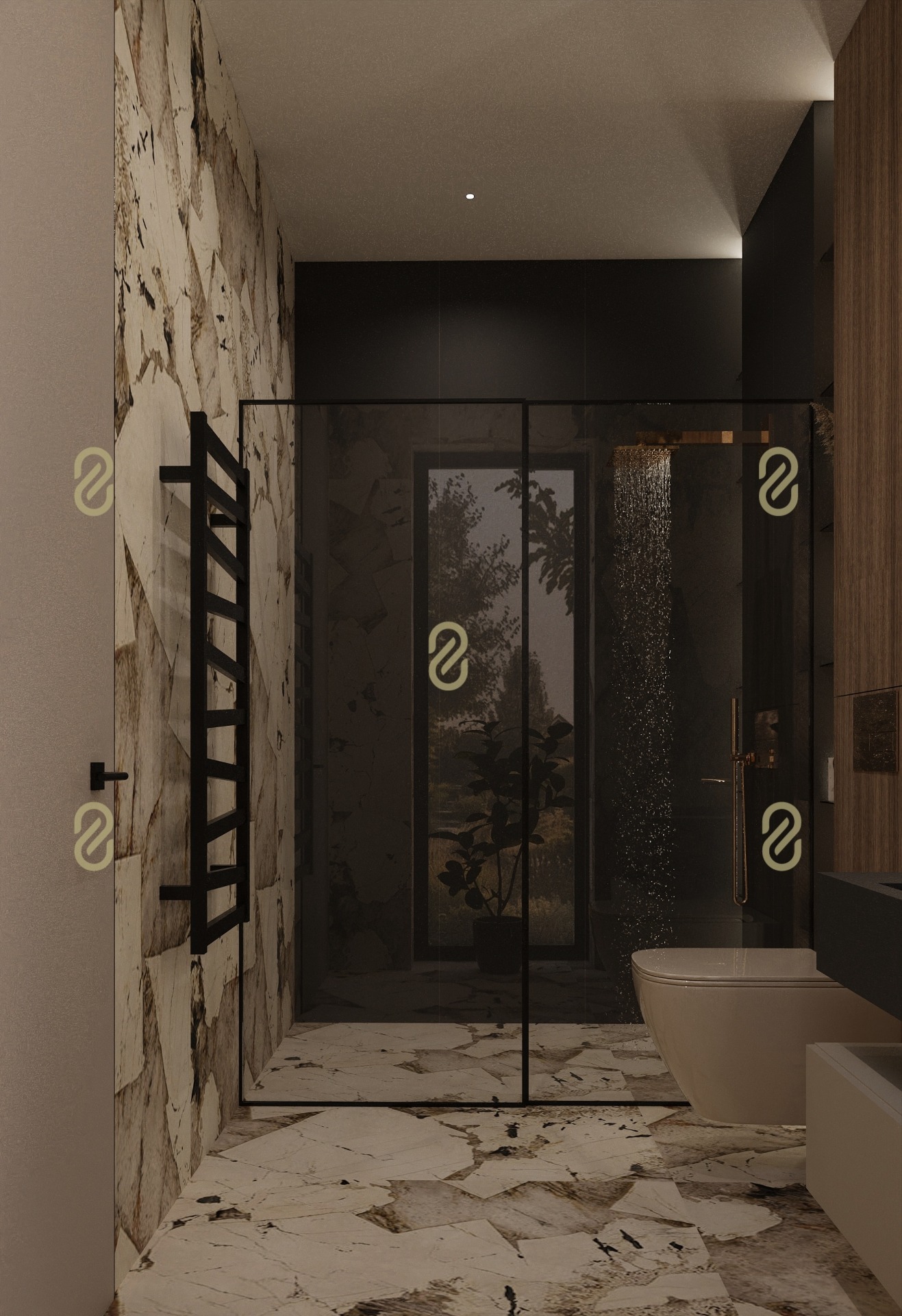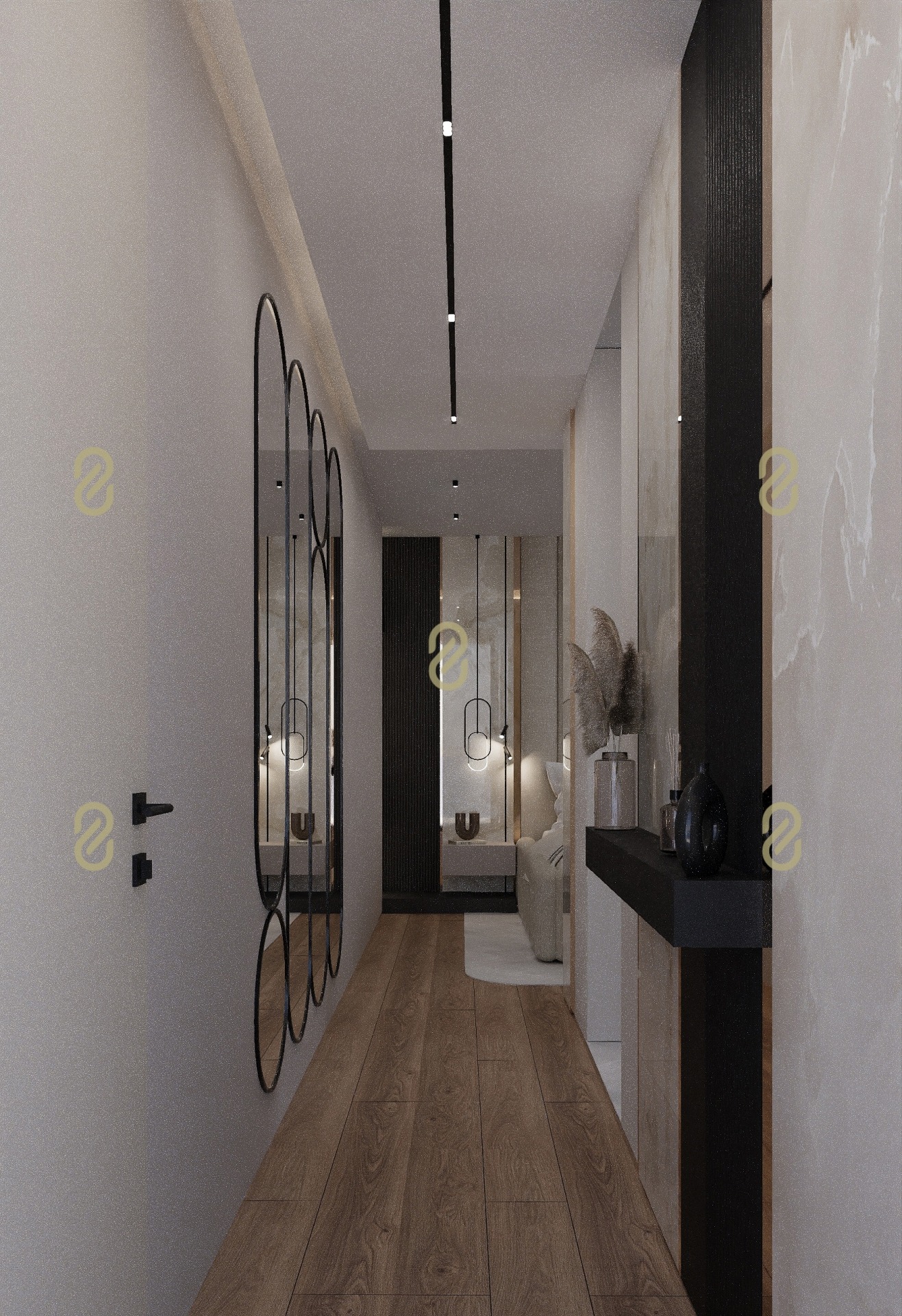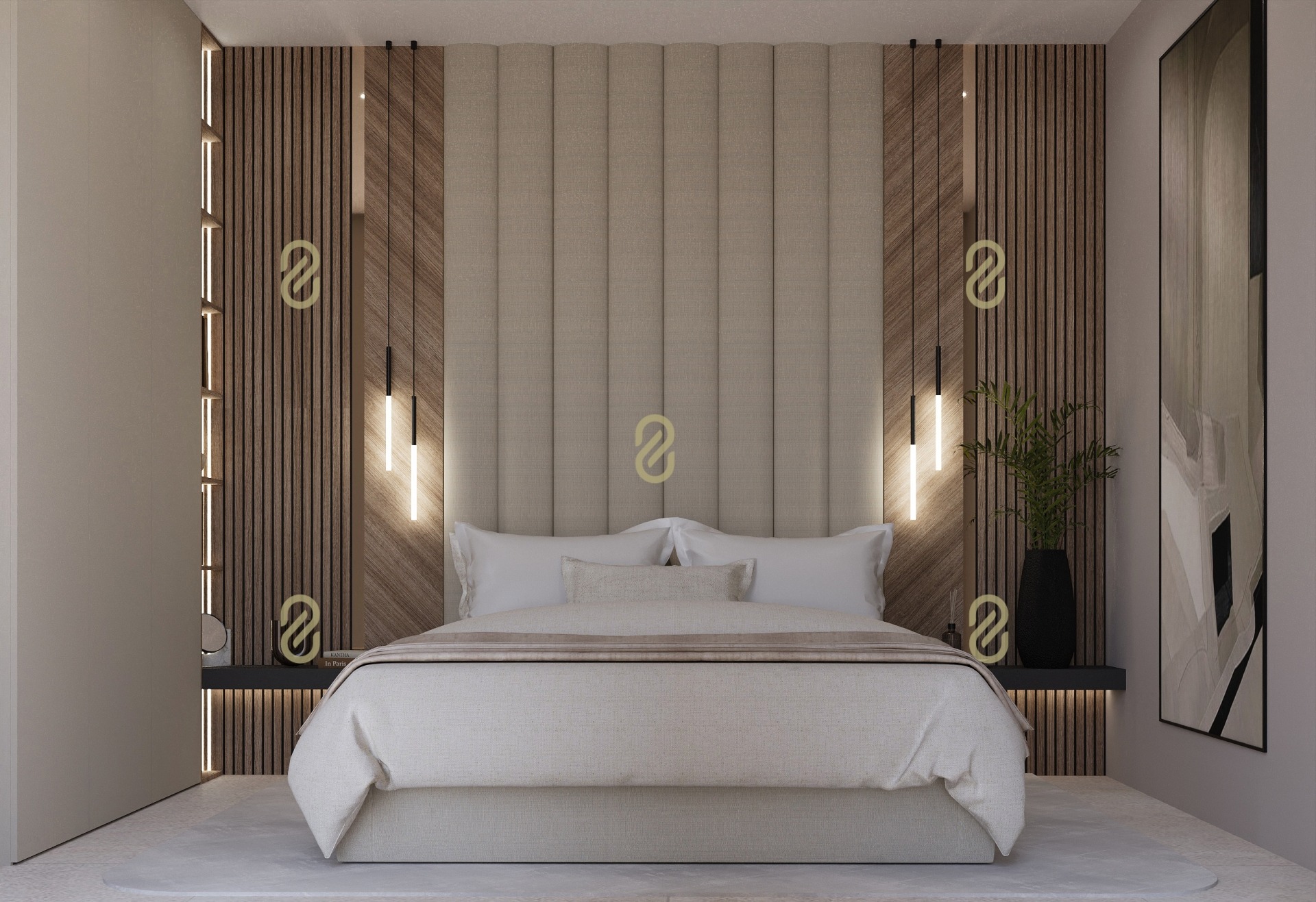 - Master hálószoba (12,5 m²) saját gardróbbal (9,5 m²) és fürdővel