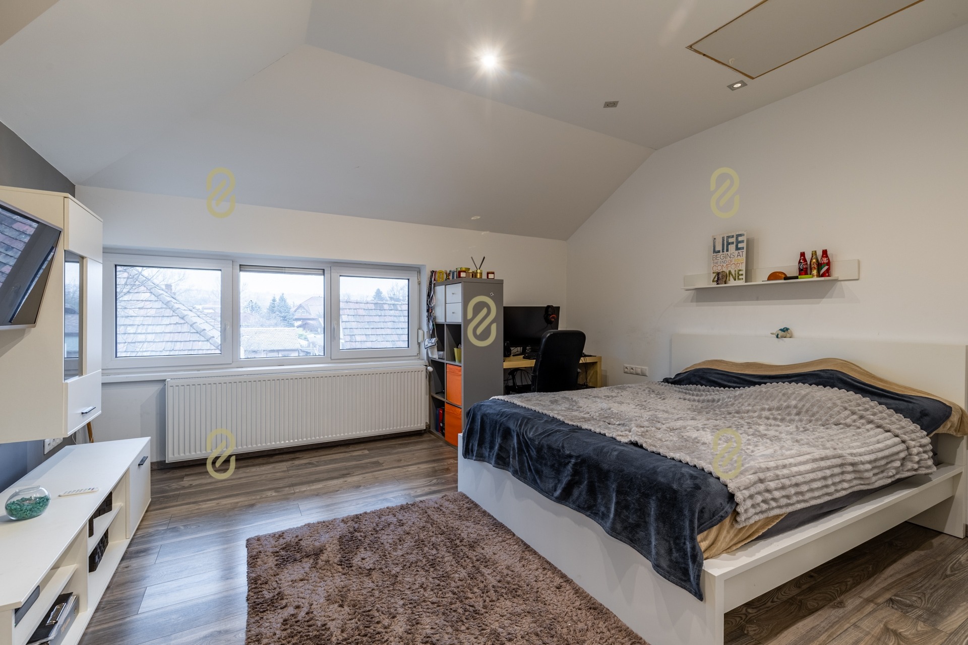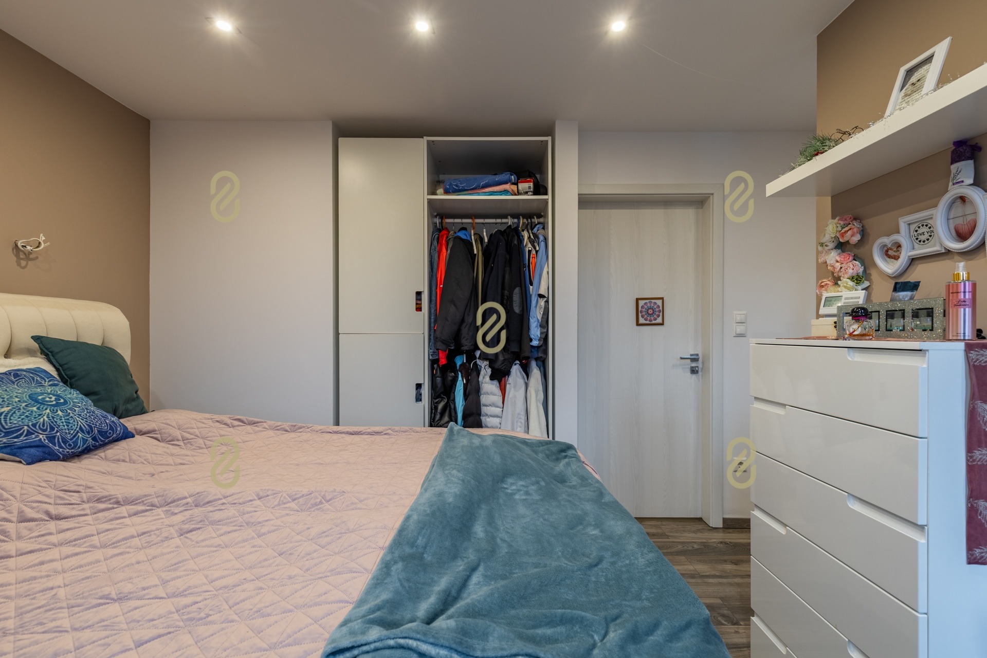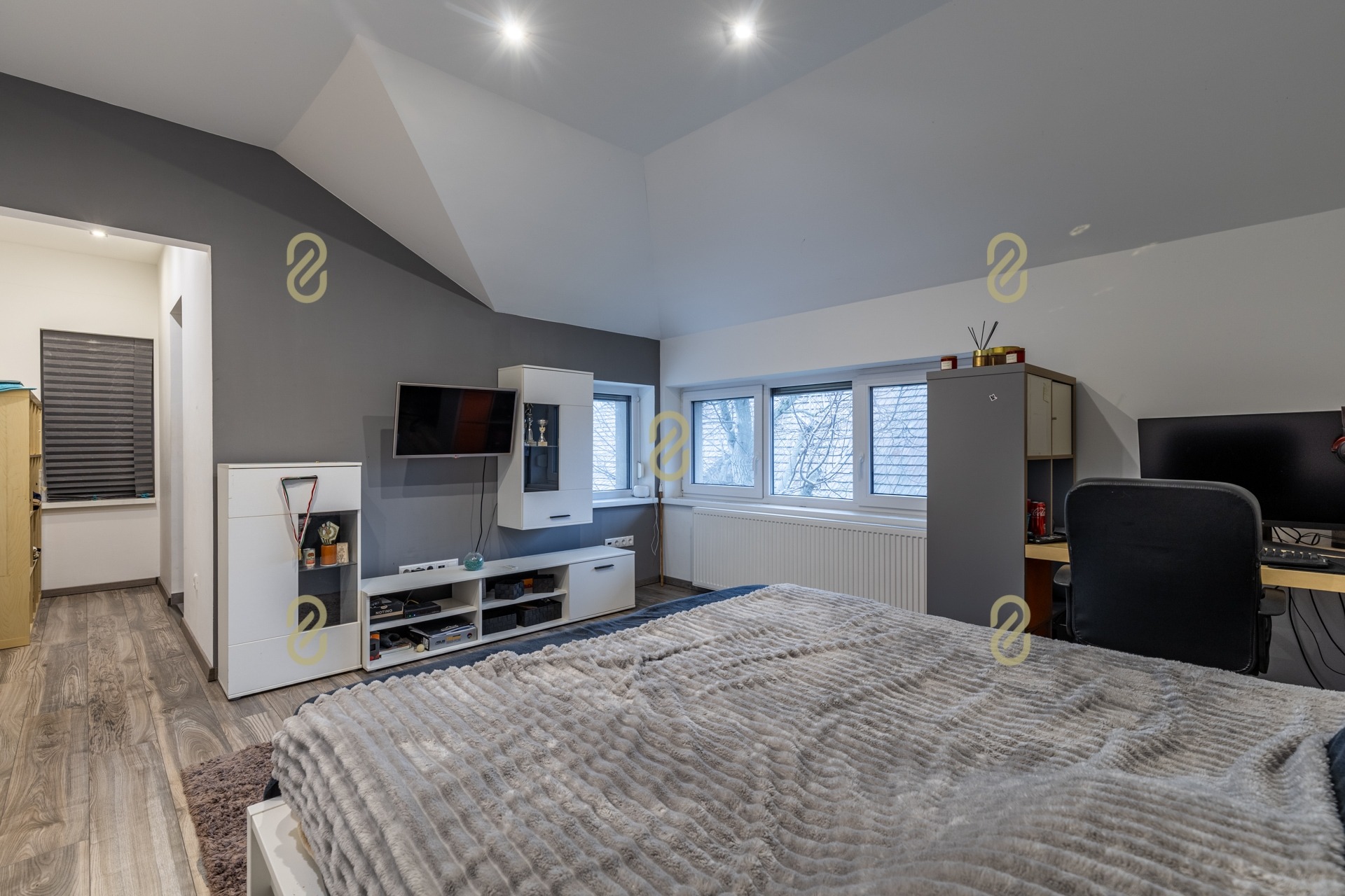 Az ingatlanban három külön nyíló szoba került kialakításra, mindegyik saját fürdőszobával és gardróbbal, így a lakók számára teljes komfort és privát szféra biztosított.