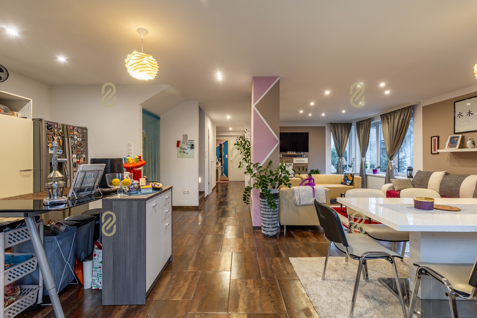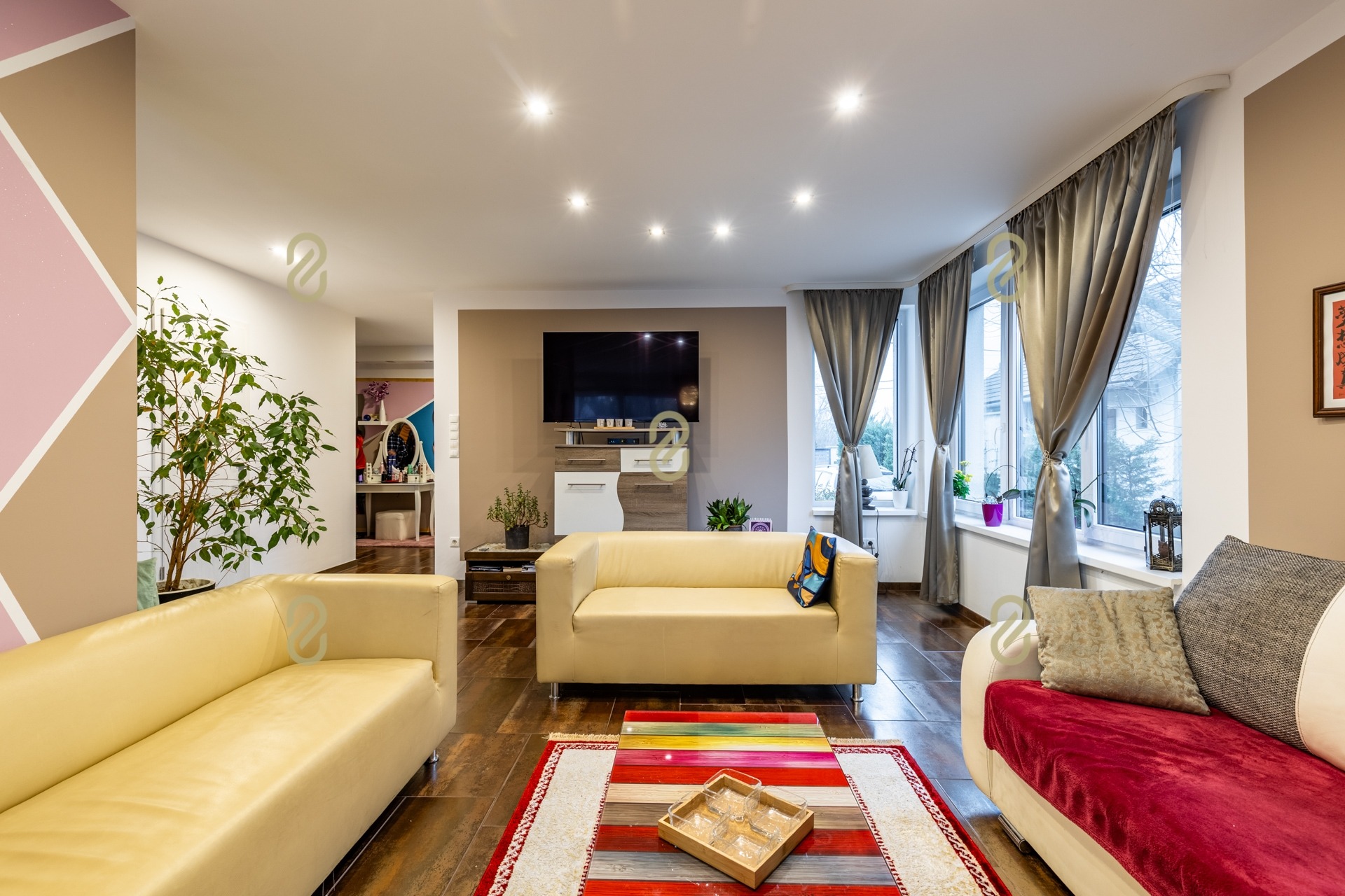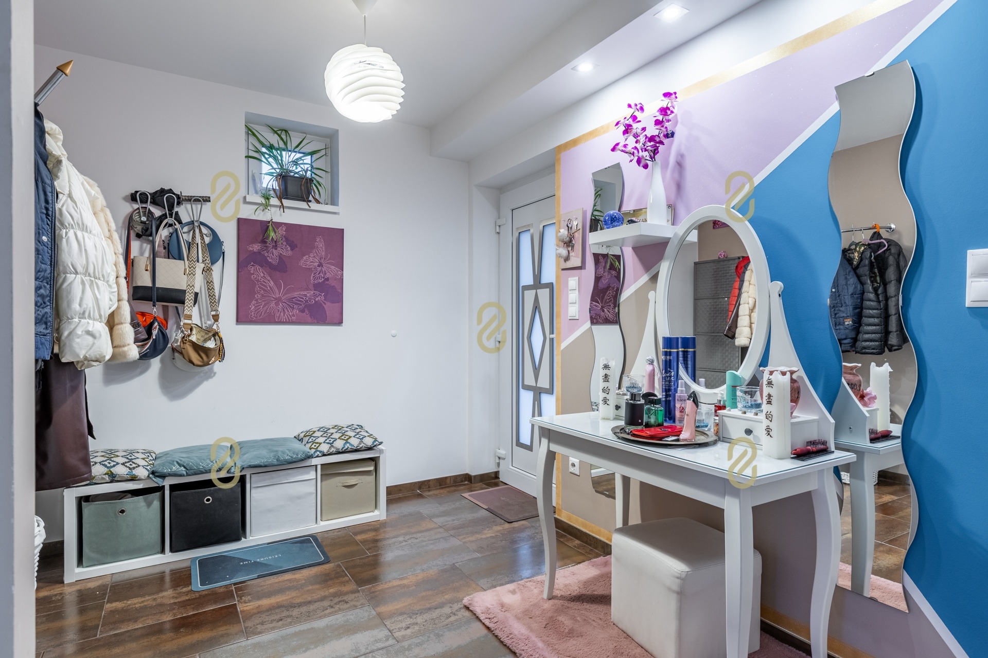 Az ingatlanban három külön nyíló szoba került kialakításra, mindegyik saját fürdőszobával és gardróbbal, így a lakók számára teljes komfort és privát szféra biztosított.