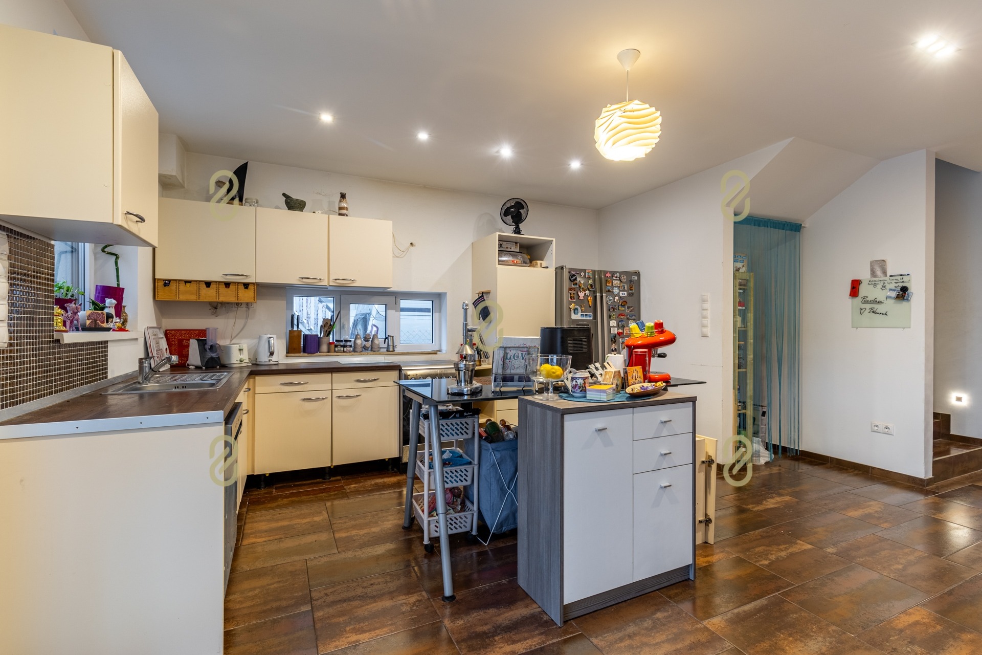 A földszinten tágas, világos nappali–étkező–konyha együttes kap helyet, melyhez közvetlen fedett terasz kapcsolódik, így a belső tér szinte észrevétlenül bővül tovább a kert irányába. Tökéletes helyszíne a családi reggeliknek, nyári vacsoráknak vagy baráti összejöveteleknek.