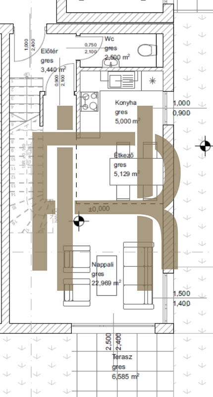 Az épület és az azokban található helyiségek méretei és kapcsolatai az építtetői igényeknek, szakmai tapasztalatoknak és az előírásoknak megfelelően kerültek kialakításra.