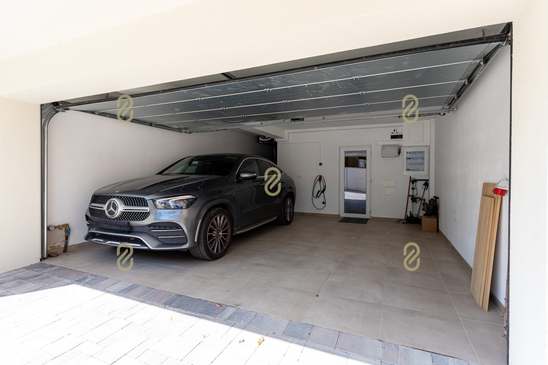 - Földszinten lett kialakítva a kétállásos fűtött garázs elektromos töltővel, mosókonyha, gépészeti helyiség.