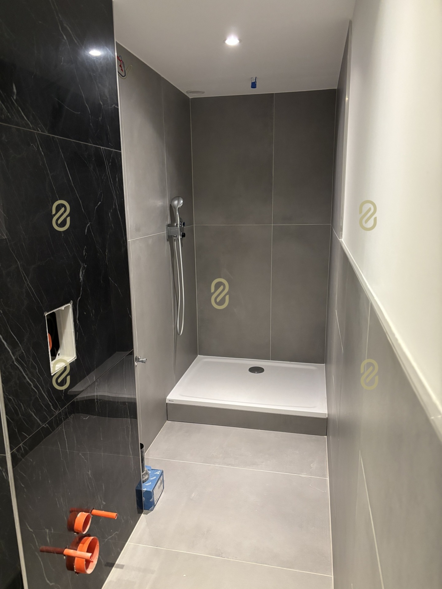 Az alsó szinten egy nagy méretű hálószoba van zuhanyzós fürdőszobával, illetve egy kisebb gardrób kialakítása is opció lehet. Mindkét szinten van ablak.