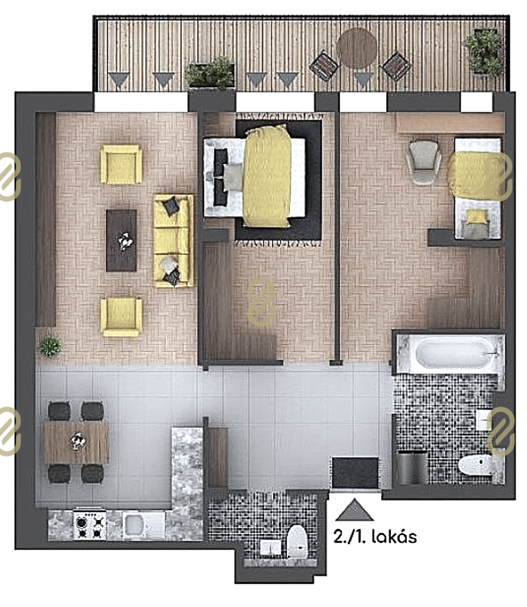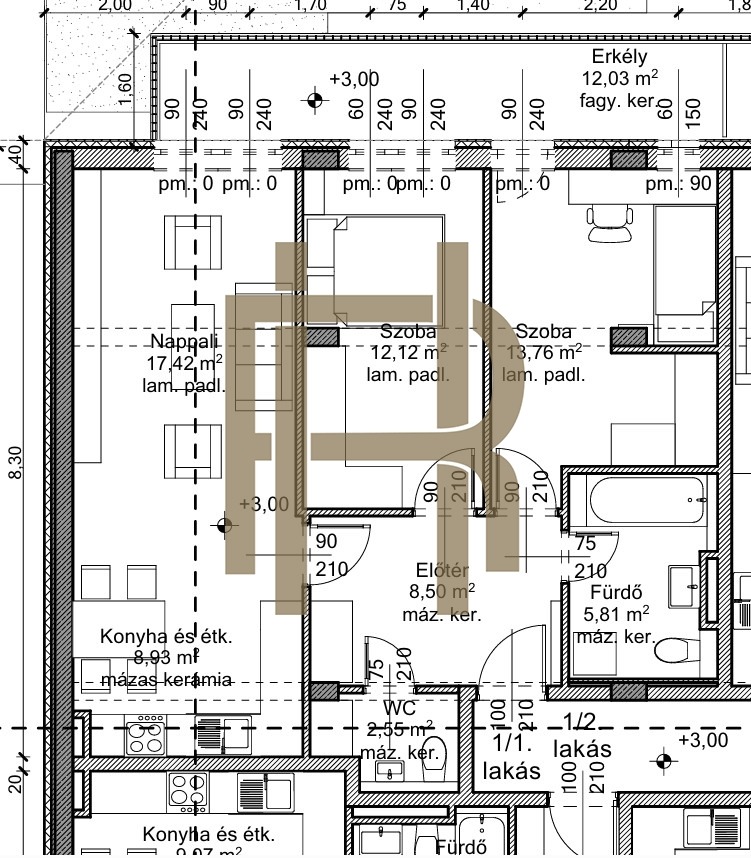AMERIKAI-KONYHÁS NAPPALI + 2 HÁLÓSZOBA, 12 nm erkély!