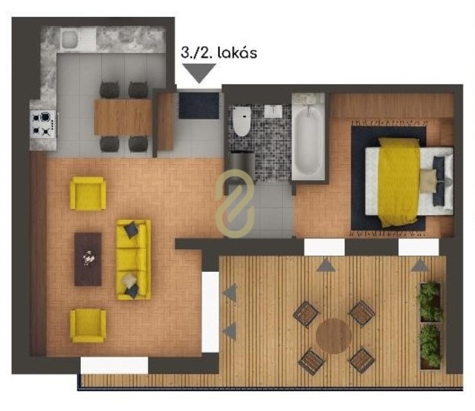 2 SZOBÁS LAKÁS NAGY TERASSZAL. KIVÁLÓ LOKÁCIÓ!