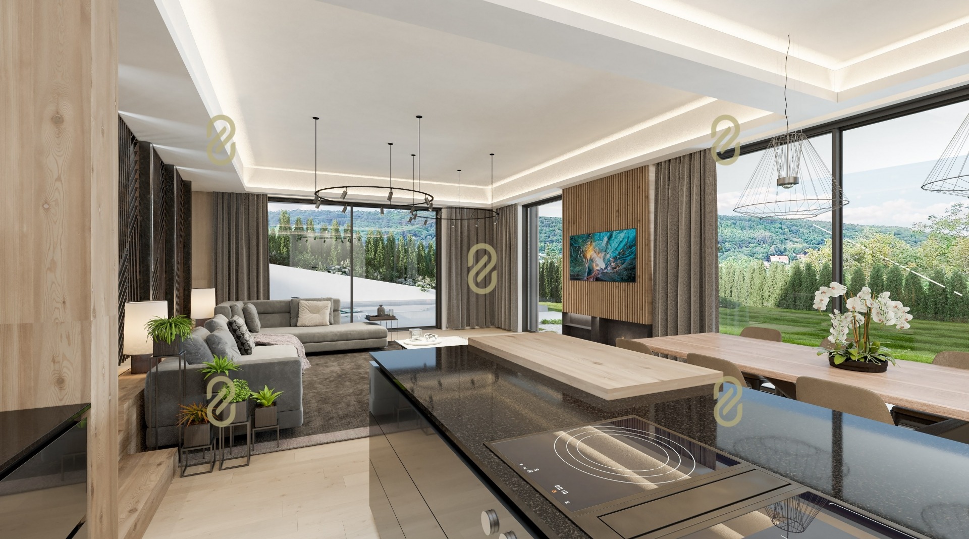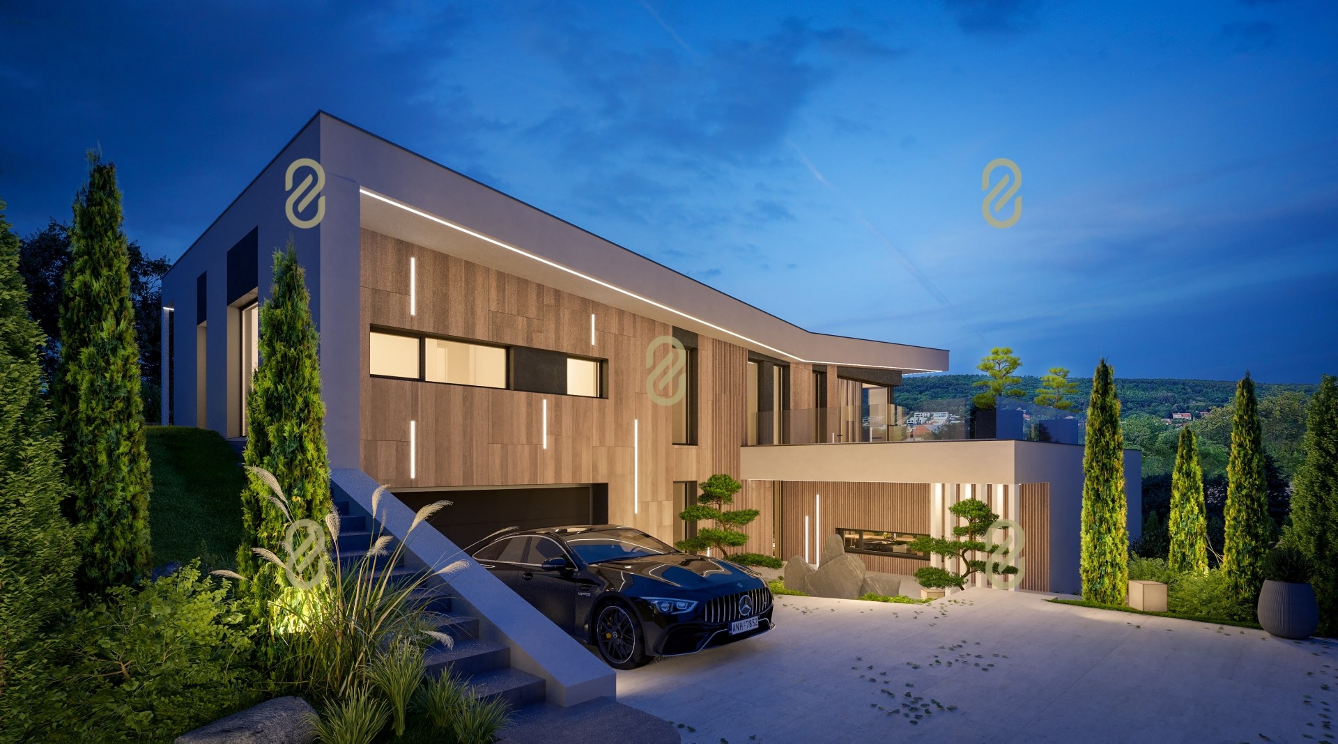 A koncepciótervezés folyamatában a Zen filozófia és életérzés a belső béke és nyugalom biztosítását, míg a végiggondolt, egymásra épülő terek a maximális használhatóságot helyezte előtérbe. Az alaprajzi elrendezés átgondoltságán túl különleges épületszerkezeti elemek kerültek kialakításra. A villa tetőszerkezetének megtört síkja követi a hegy vonalát, majd kinyílik a panoráma felé. A megérkezés élménye minden érzékszervünkre hat, amikor meglátjuk a ház középpontjába épített kivilágított bonsai kertben a fény-árnyék jelenség különleges játékát, amit az előszobából, a nappaliból, a panoráma szaunából, a jakuzziból, a fitness teremből és a medencéből is élvezhetünk a lenyűgöző kilátás mellett.