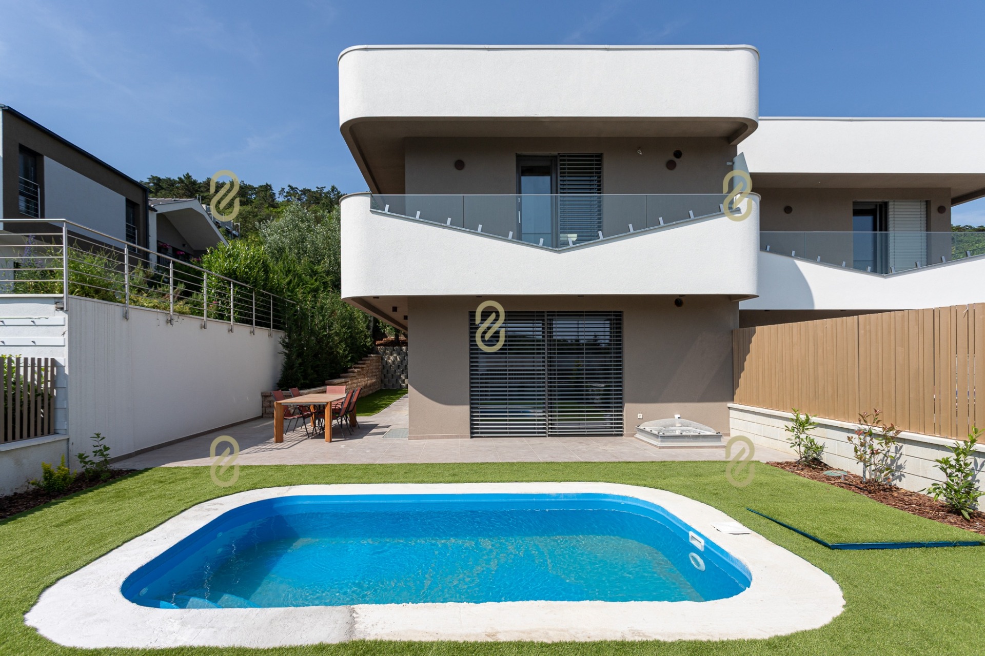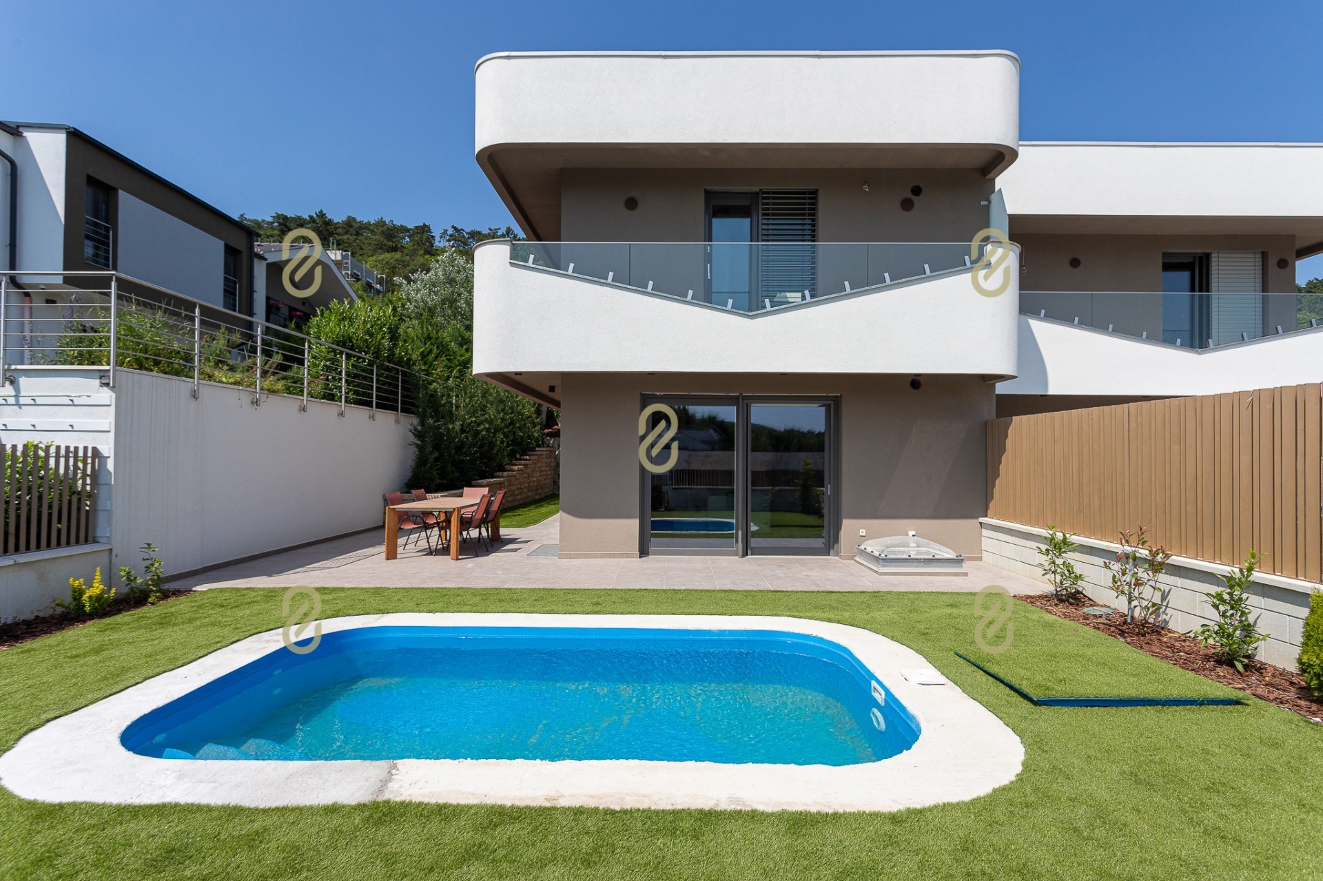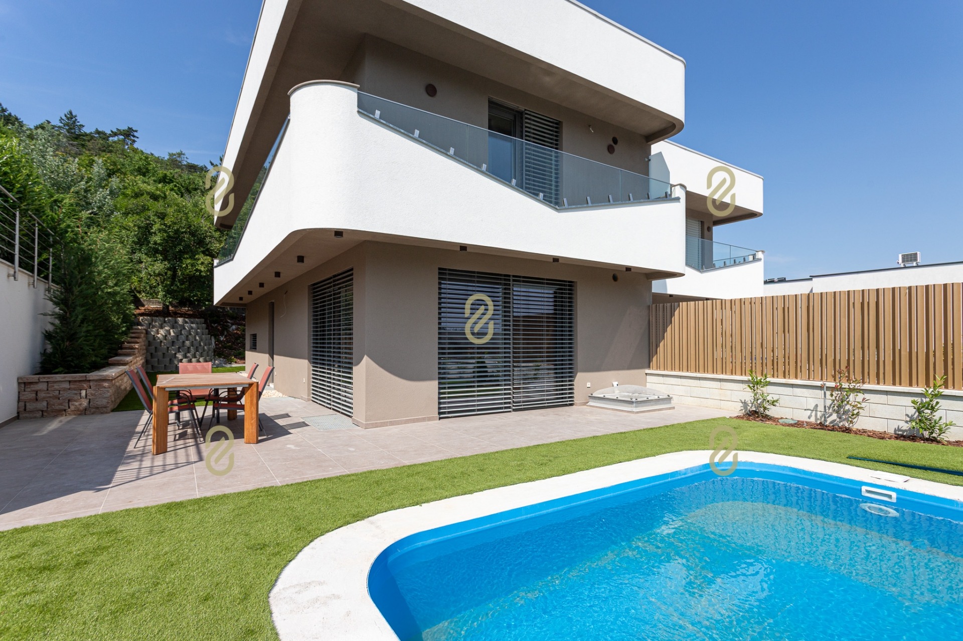 Az ingatlan egy 360 m²-es, teljesen szeparált telekrészen helyezkedik el, városi és hegyvidéki panorámával, napfényben úszó terekkel, privát életterekkel és olyan kényelmi megoldásokkal, amelyek valódi életminőséget biztosítanak a mindennapokban.