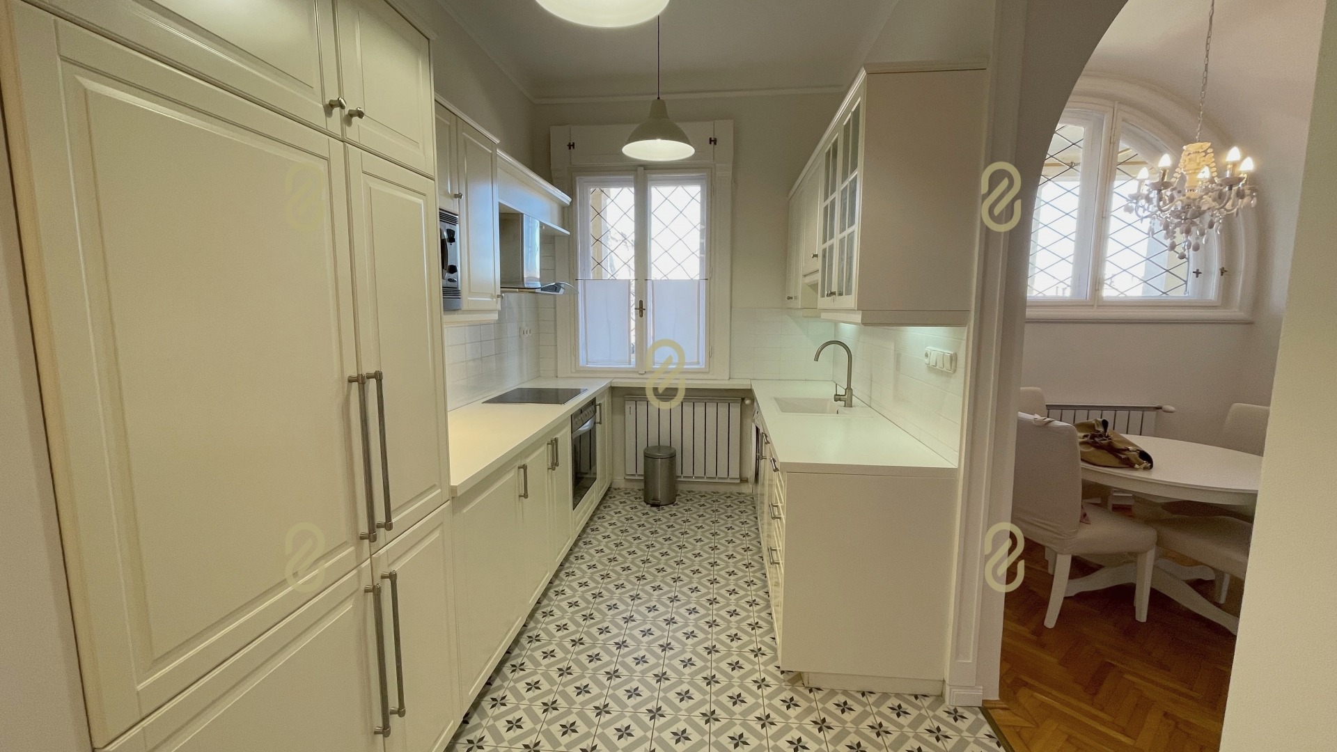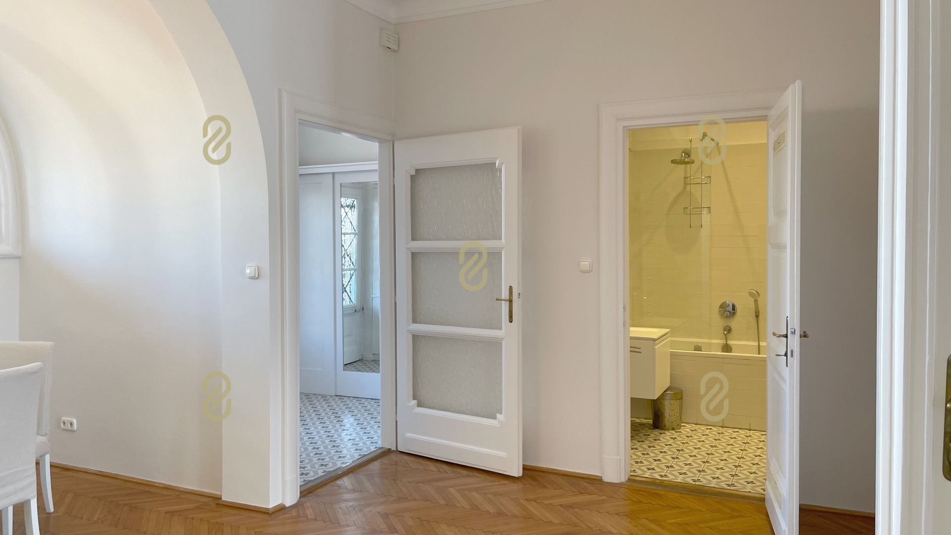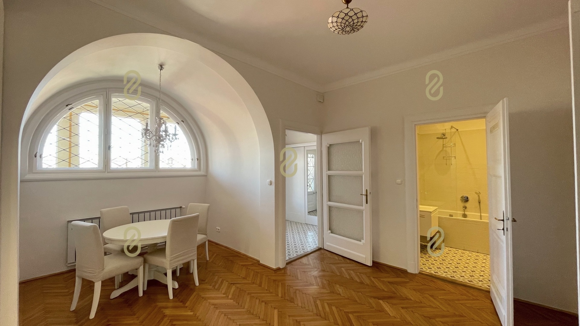 A klasszikus stílusú, kiváló állapotú ház legfelső emeletén található ingatlan két lifttel is kényelmesen megközelíthető. A ház elegáns belső udvarral rendelkezik, amely tovább emeli az otthonos hangulatot.