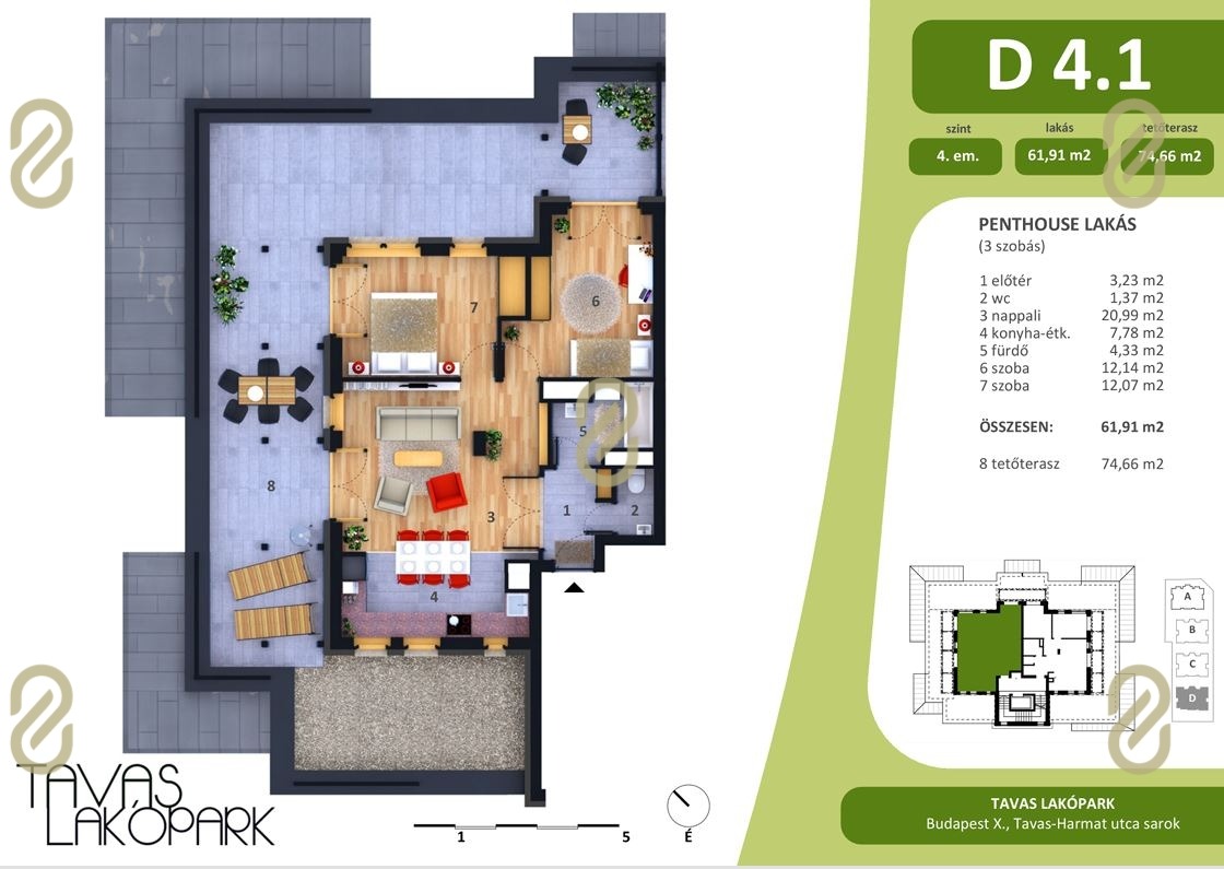 Exkluzív megjelenésű, új építésű lakópark négy, egységes koncepció mentén tervezett épületben, összesen 82 átgondolt kialakítású lakással. A kínálat a stílusos garzonoktól a tágas, családi otthonokig terjed, mindegyikhez erkély, terasz vagy privát kertkapcsolat tartozik.